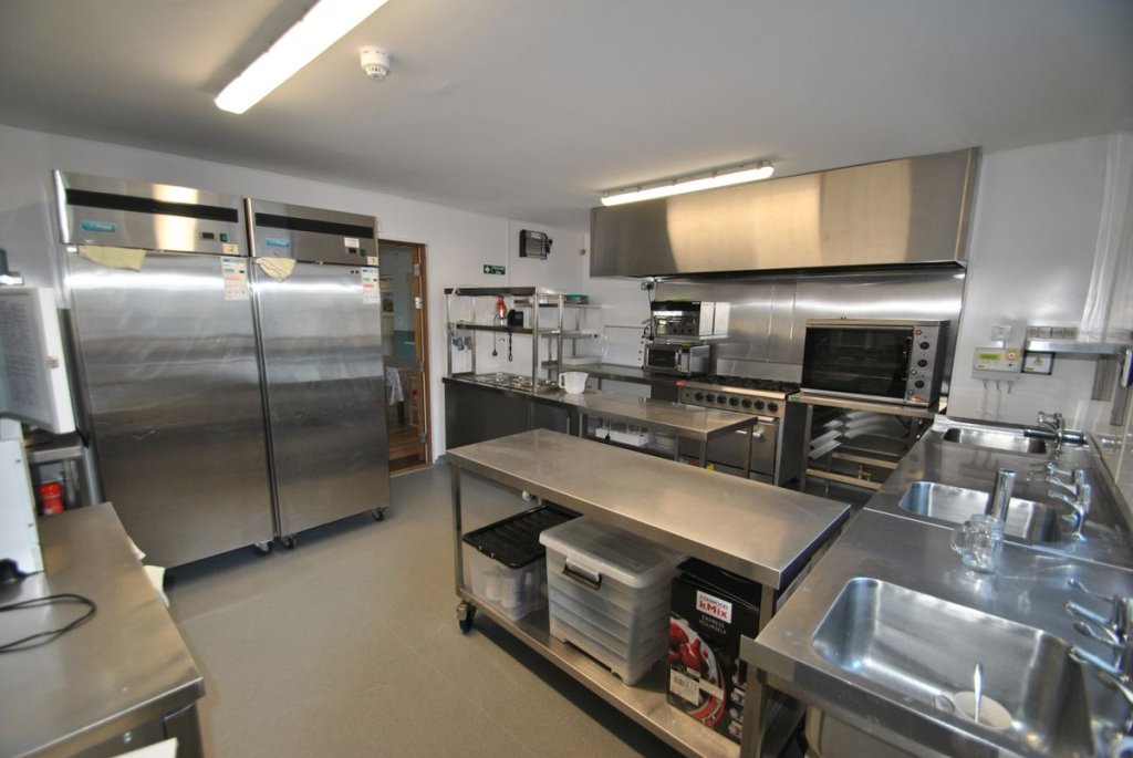 * Food Preparation/Wash Up Area 3.65m x 4.42m. Stainless steel sink units, storage areas and dishwasher and fridge