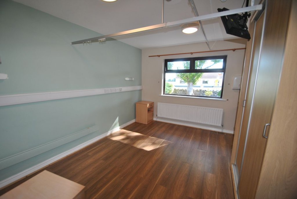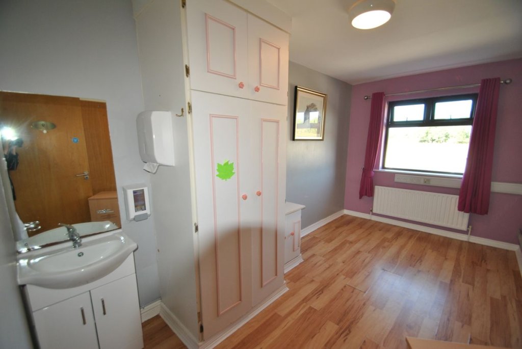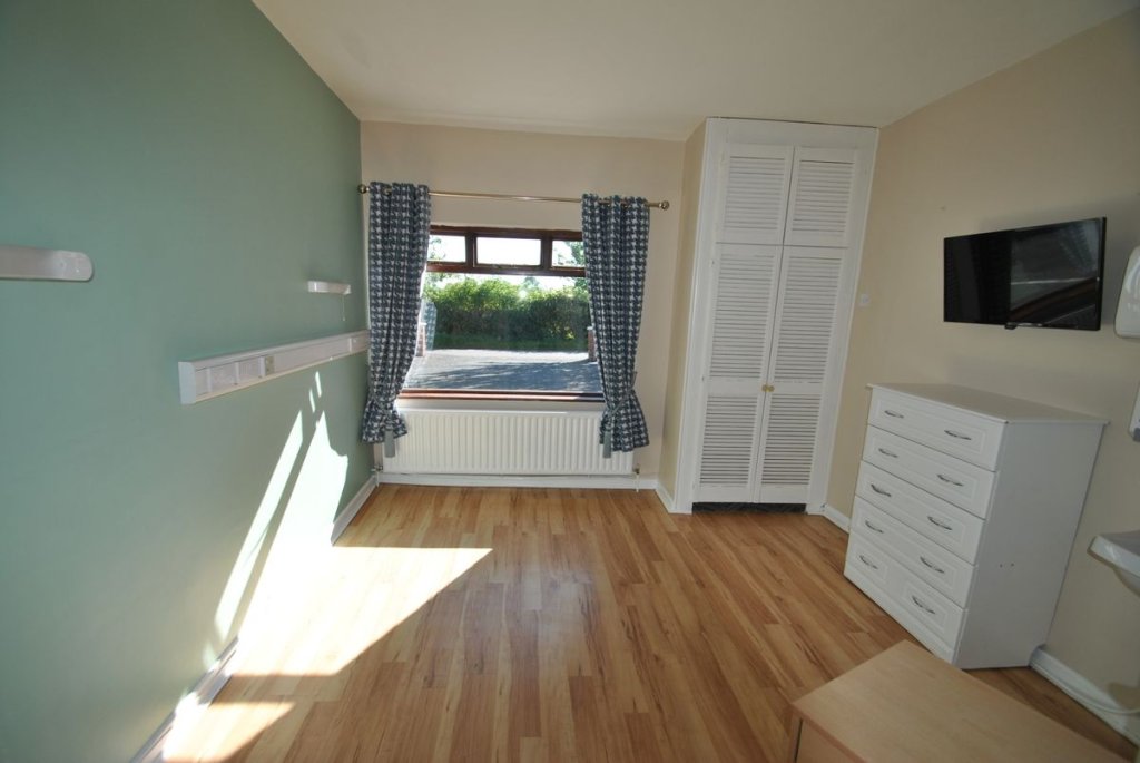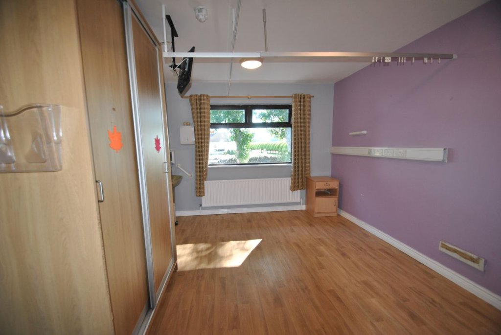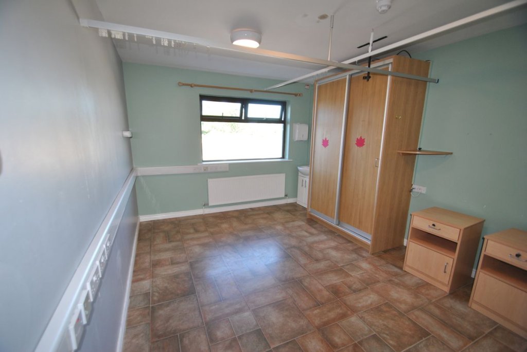 * Toilet and Washroom 1.27m x 4.66m. With WC and WHB. Currently used as a single room with a WHB, fitted wardrobes, laminate flooring, hospital grade single bed with cot sides, privacy curtain rails and views overlooking the countryside to the rear of the property.