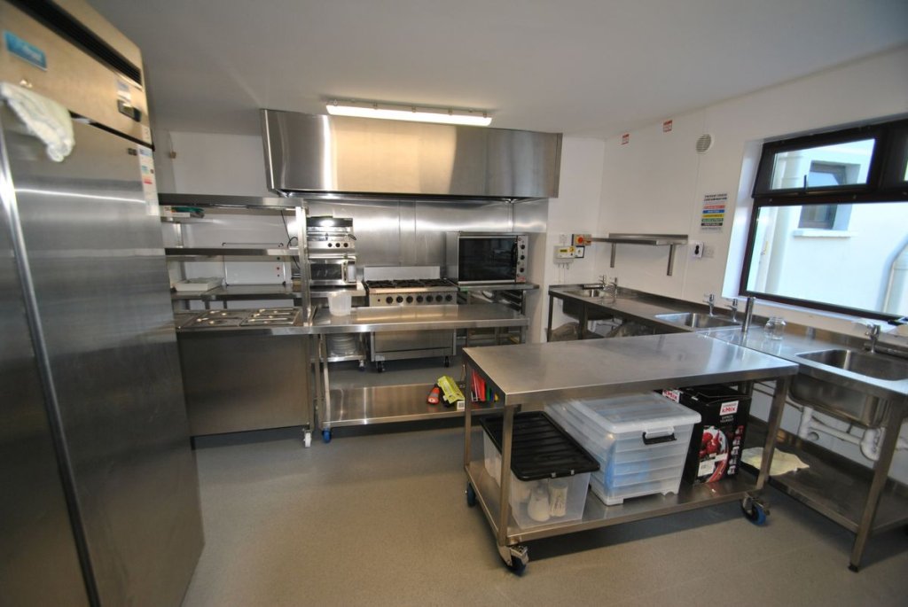 * Kitchen 4.35m x 5.31m. Recently upgraded and modernised to provide for a fully fitted stainless steel catering kitchen incorporating ovens, 6 ring gas hob, microwave, grill, extractor hood, large display hot counter/bain-marie, stainless steel display sink units, two large fridge freezers, water boiler, dishwasher and much more. Door to rear yard and external laundry room.
