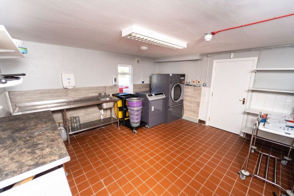 * Outside The Property The property is set well back from the road and parking is provided for a large number of cars. The property is fenced all around with perimeter shrubs and trees to the front. A large block built boiler house to the rear provides storage and a laundry room off an enclosed yard is fully fitted with storage and wash areas, together with industrial washing machines and dryers.