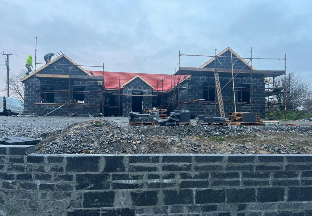 A new build fabulous 4 bedroomed bungalow house with garage is being completed to a builders finish on this 1/2 acre elevated site in the picturesque village of Glenamaddy, Co Galway